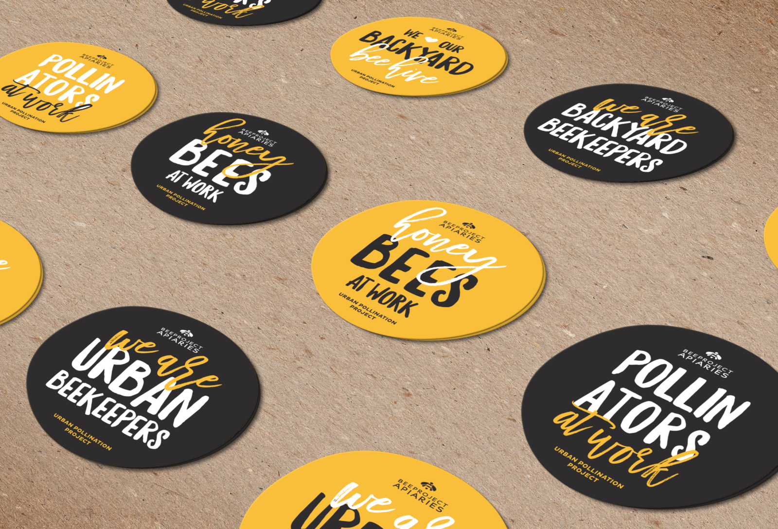 The new brand guide was put to good use when Manoverboard created a number of new brand assets for Beeproject including launch party invitations, pins, labels, and a pop-up sign.
